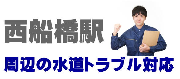 西船橋駅で早くて安い水道修理業者をお探しの方は当店までお問い合わせください。蛇口の水漏れ、トイレつまり、排水口の溢れ、パイプ修理など、西船橋駅での水道トラブルは最短15分到着です。西船橋駅は24時間受付。西船橋駅エリアは見積もり無料、出張費0円でスタッフがかけつけます。西船橋駅にお住まいの方で水廻りのお困りごとはご相談ください。